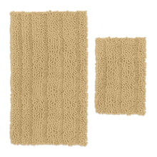 Non-Slip Thick Shaggy Chenille Bathroom Rugs, Bath Mats for Bathroom Extra Soft and Absorbent - Striped Bath Rugs Set for Indoor/Kitchen, 15x23 + 27x47 Inch, Beige