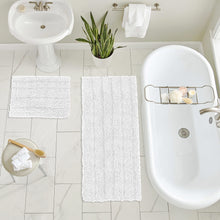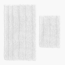 Non-Slip Thick Shaggy Chenille Bathroom Rugs, Bath Mats for Bathroom Extra Soft and Absorbent - Striped Bath Rugs Set for Indoor/Kitchen, 15x23 + 27x47 Inch, White