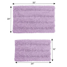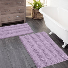 Non-Slip Thick Shaggy Chenille Bathroom Rugs, Bath Mats for Bathroom Extra Soft and Absorbent - Striped Bath Rugs Set for Indoor/Kitchen, 15x23 + 20x30 Inch, Lavender