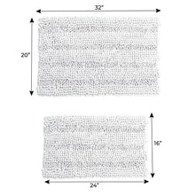 Non-Slip Thick Shaggy Chenille Bathroom Rugs, Bath Mats for Bathroom Extra Soft and Absorbent - Striped Bath Rugs Set for Indoor/Kitchen, 15x23 + 20x30 Inch, White