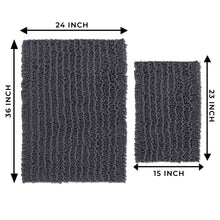 Non-Slip Thick Shaggy Chenille Bathroom Rugs, Bath Mats for Bathroom Extra Soft and Absorbent - Striped Bath Rugs Set for Indoor/Kitchen, 15x23 + 24x36 Inch, Charcoal