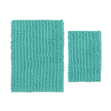 Non-Slip Thick Shaggy Chenille Bathroom Rugs, Bath Mats for Bathroom Extra Soft and Absorbent - Striped Bath Rugs Set for Indoor/Kitchen, 15x23 + 24x36 Inch, Turquoise