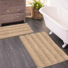 Non-Slip Thick Shaggy Chenille Bathroom Rugs, Bath Mats for Bathroom Extra Soft and Absorbent - Striped Bath Rugs Set for Indoor/Kitchen, 15x23 + 20x30 Inch, Beige